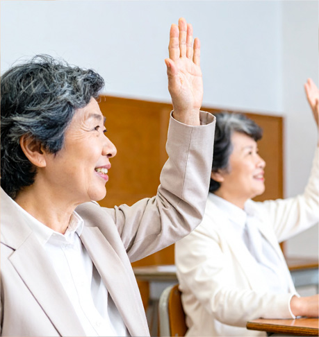 「おとなの学校」プログラムを通して脳と心を活性化させることで認知機能低下予防・進行防止を行っています。