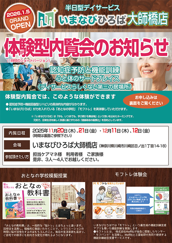 「いまなびひろば」は「今も、いつまでも、学び続ける集会場」という想いを込めたネーミングです。
